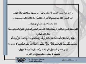 حين يغدو الإيمان جسرًا بين اللذة والخلود ، نلهث وراء الدنيا بغير حدود، بينما يغيب عنا أن الآخرة وعد باقٍ لا يفنى. التوازن بين الحياتين هو سر الطمأنينة، فمن صدق قلبه بلقاء الله، عاش دنياه برضا، وظفر بأبديته نعيمًا.